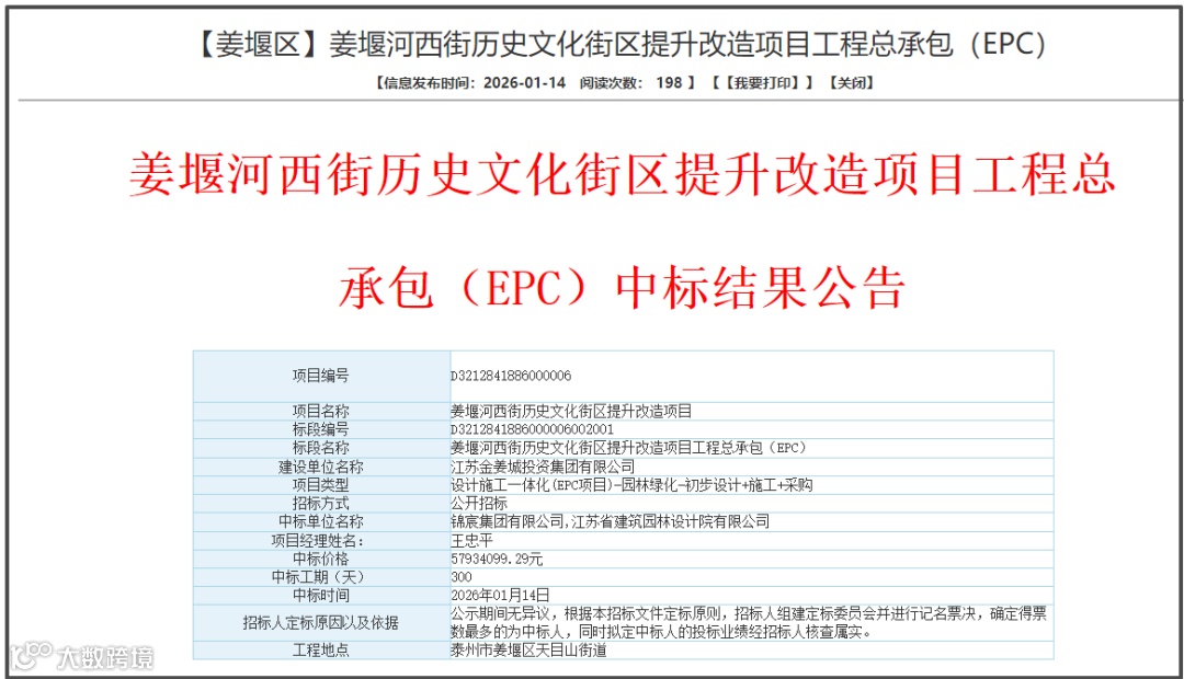 其中,河西街历史文化街区提升改造项目已完成招标,由锦宸集团有限公司与江苏省建筑园林设计院有限公司联合承建,中标金额5793.41万元,工期300天,将进一步提升区域文化与生态风貌;同时计划建设农村生态河道18公里、综合整治河道28条、打造幸福河湖26条,推进国家级幸福河湖泰东河建设。