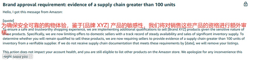 卖家收到额外审核邮件 图源:亚马逊卖家中心