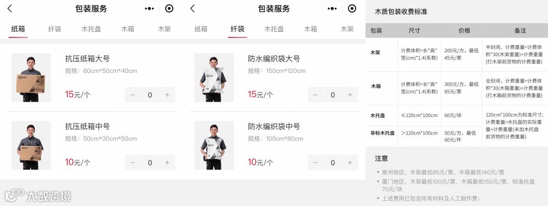 (德邦快递包装价格说明,来源:德邦快递小程序页面截图)
