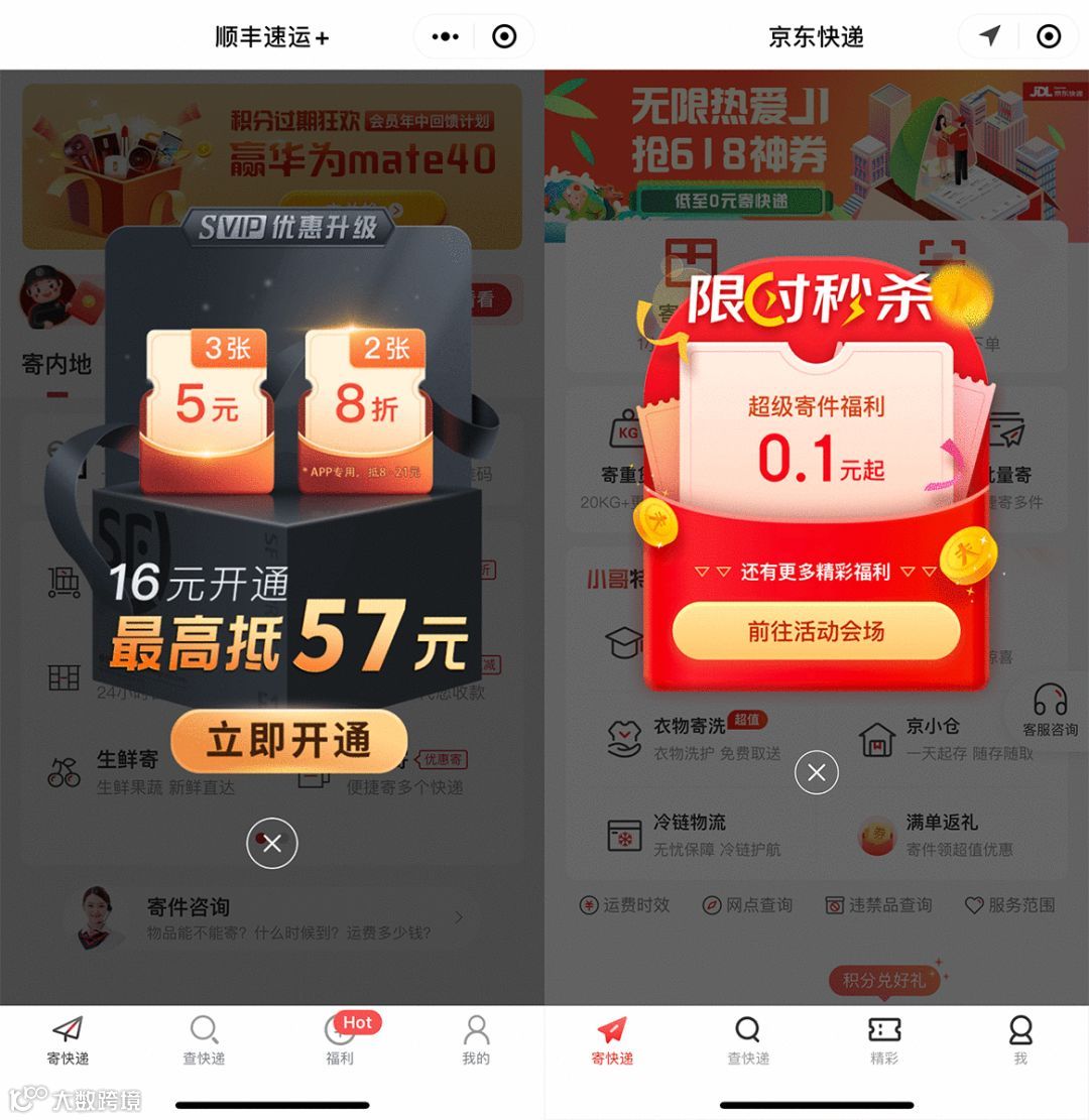 小程序也为企业提供了一个更容易触达用户的入口。用户首次打开小程序时,可以设置一些优惠信息的弹窗,吸引用户使用。比如顺丰有开通会员优惠的弹窗,京东有限时秒杀福利的弹窗,能够吸引用户眼球,同时增加用户粘性。