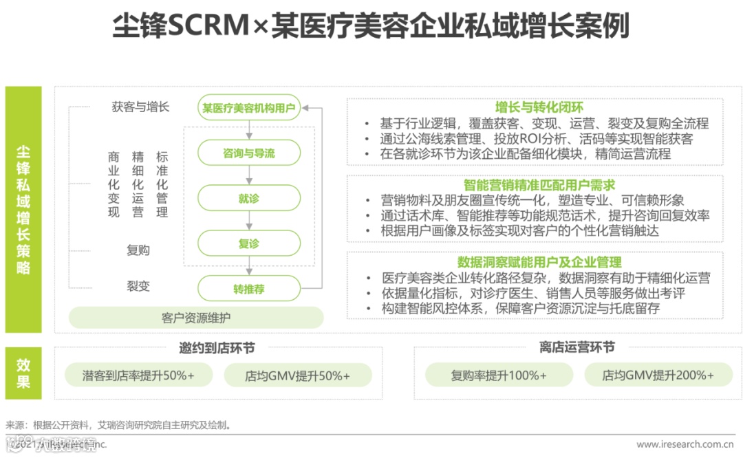 针对获客成本高、就诊流程复杂等问题,尘锋SCRM为某医美企业构建覆盖获客、咨询、导流、就诊到复诊的私域增长链路,结合优质服务与精准运营增强用户连接,并通过优惠激励促进转介绍,实现客户全生命周期管理与第二增长曲线打造。