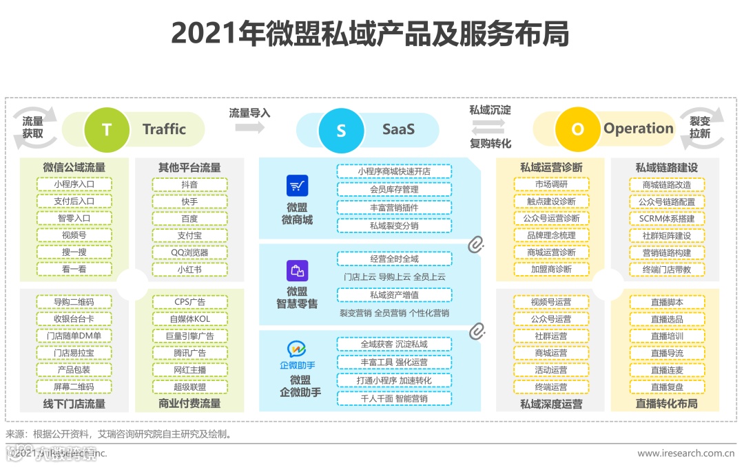 微盟是中国领先的企业云端商业与营销解决方案提供商,推行TSO(Traffic+SaaS+Operation)全链路增长模型,依托流量整合能力与“微商城”、“智慧零售”、“企微助手”等SaaS产品矩阵,为企业提供从公域引流、私域搭建到转化变现及用户深度运营的完整路径。