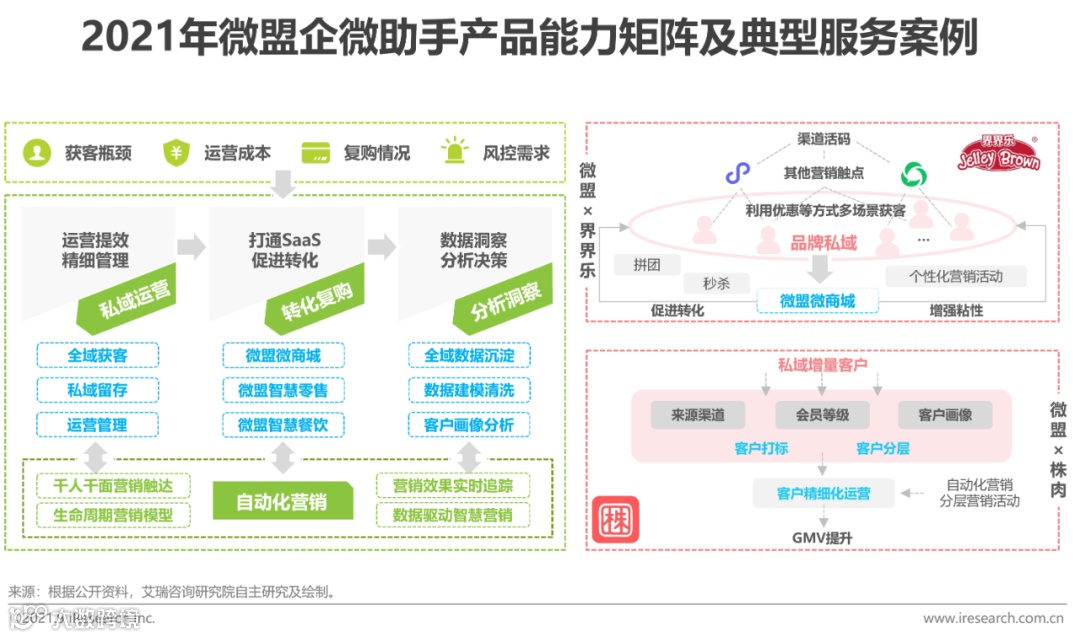 立邦通过微盟打造门店、营销、直播三位一体的数字化体系,沉淀私域客户并推动转化,2021年上半年商城GMV达6767万元;联想来酷借助微盟多产品组合实现全渠道流量串联与用户生命周期管理,3个月内达成338万元GMV。