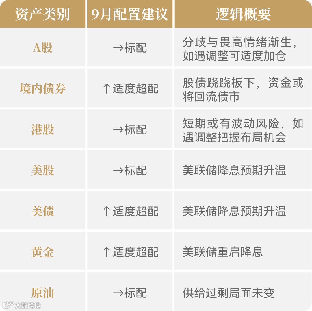 9月展望:随着市场逼近历史高位,投资者分歧加大,畏高情绪升温,预计进入震荡盘整与结构性分化阶段。当前行情仍由政策预期改善带来的流动性推动,但多空因素交织,短期或有调整压力。若出现回调,建议积极布局。市场延续“高切低”轮动,消费、非银金融及红利板块性价比凸显;中期仍看好科技成长方向,调整后具备重新配置机会。