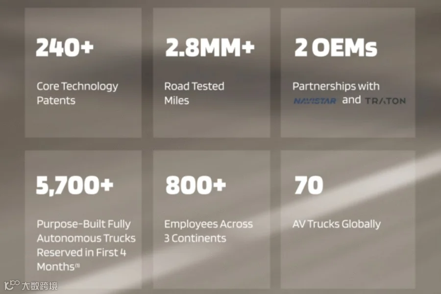 在自动驾驶卡车开放预订的头 4 个月里,获得 5700 台的预订单; -
