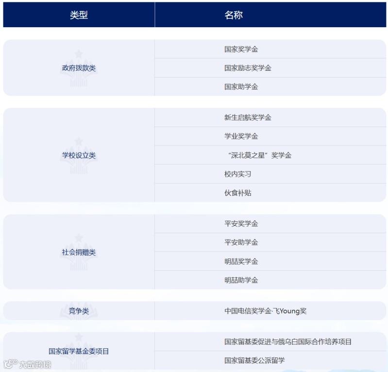 学校奖学金种类丰富,资助体系完备,配有国家级、校级和社会捐助等多种奖助学金。学校不断充实和完善的奖助体系,持续助力学生茁壮成长,筑牢学生学习和生活的坚固屏障。