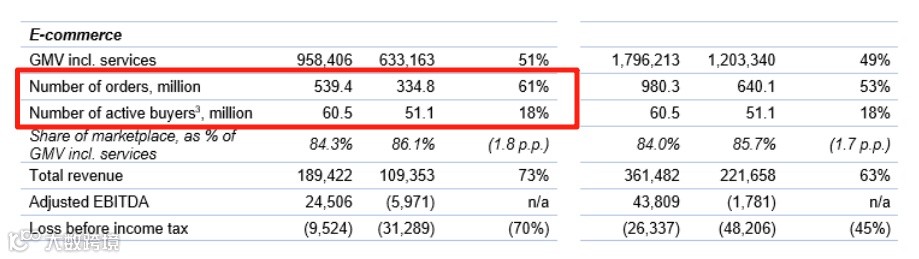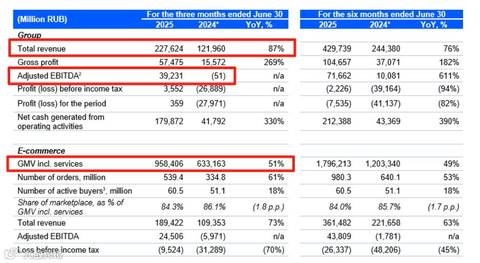 - 商品交易总额(GMV)达9584亿卢布,同比增长51%;
