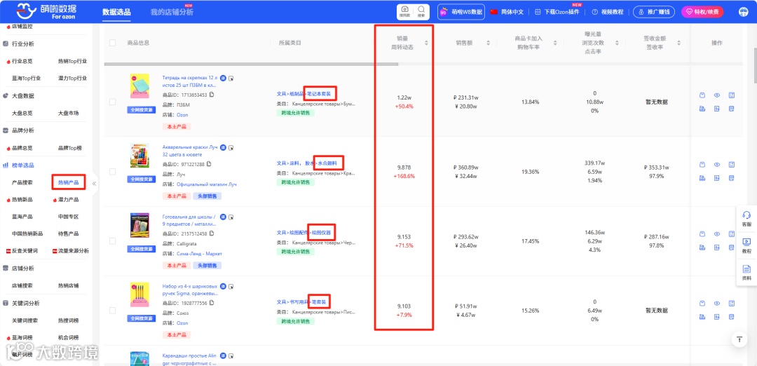 Ozon数据显示,笔记本套装销售率飙升151.51%,GMV增长达192.69%。这一增长源于俄罗斯9月1日“知识日”——全国中小学及高校统一开学,学生需购置文具、礼品,教师也会收到学生赠礼。