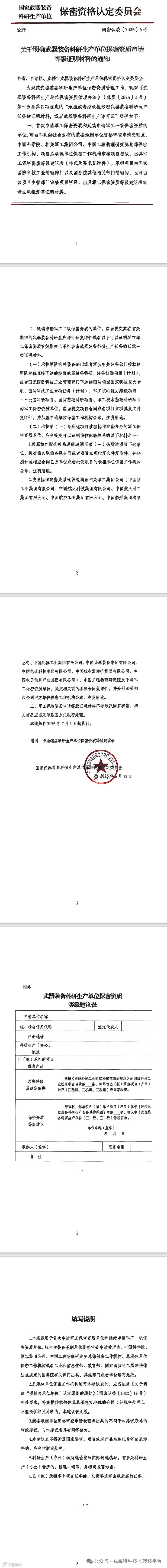 需要特别注意的是,对于由国家国防科技工业管理部门以及国务院其他相关部门管理的项目,项目主管部门除了可以开具军工保密资质等级建议表外,还能出具立项批复等证明材料,为项目的推进提供合规依据。