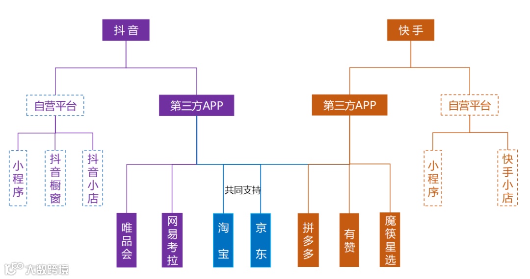 在行业早期,短视频平台的引流并没有明确的划分,主播既可以通过抖音和快手将购买途径引流到淘宝、京东、拼多多、唯品会等平台上,也可以直接在抖音小店和快手自营平台上完成转化。