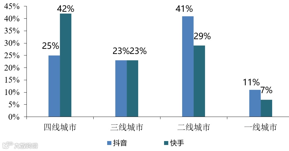 ▼抖音用户偏向高线城市,快手用户偏向低线城市