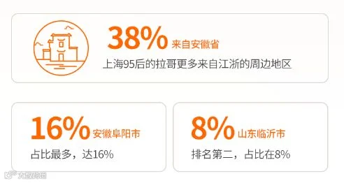 上海为三角洲城市群之首,有不少周边发达城市的年轻力量也喜欢到上海寻求发展机会。上海95后的司机有38%的人来自于安徽省。其中,安徽阜阳市为最多,占比达16%,而山东临沂市排名第二,占比在8%。虽然是在吴侬软语的地方生活工作,但在上海用户眼里,他们干起活来十分利索,效率极高。