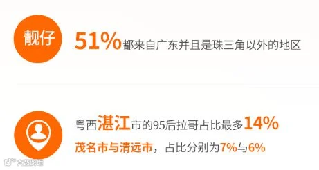 历史悠久的“南国大门”广州,是货拉拉在中国内地市场的首个落地城市。因独特的人文风俗和语言环境,在广州跑货拉拉的95后51%都来自广东,并且是珠三角以外的地区。这是因为珠三角有着成熟的经济环境,大多数人无需到外寻求发展。其中,来自粤西湛江市的95后拉哥占比最多,为14%,其次则为茂名市与清远市,占比分别为7%与6%。广州用户对他们评价得最多的是:帅气、颜值高。