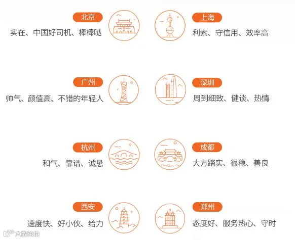 报告除了呈现货拉拉平台95后货车司机的群体特征,还选取了8座一二线典型城市的95后货车司机进行区域性特征剖析。数据显示,在这些城市的用户评价中,95后司机大多是优质青年,不乏用户好评。北方城市的司机多被用户评价「直爽豪气」,而南方城市司机则多被评价「细腻温暖」。