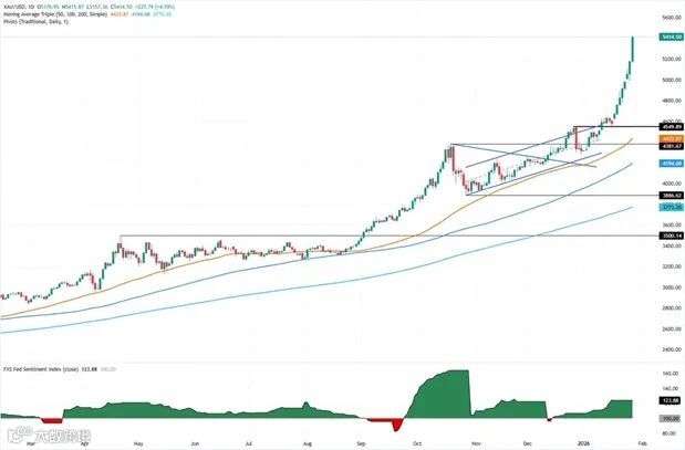 Valencia表示,黄金价格涨势延续,已经连续六个交易日创下历史新高,呈抛物线式上涨。黄金买家接下来可能瞄准5500美元/盎司。