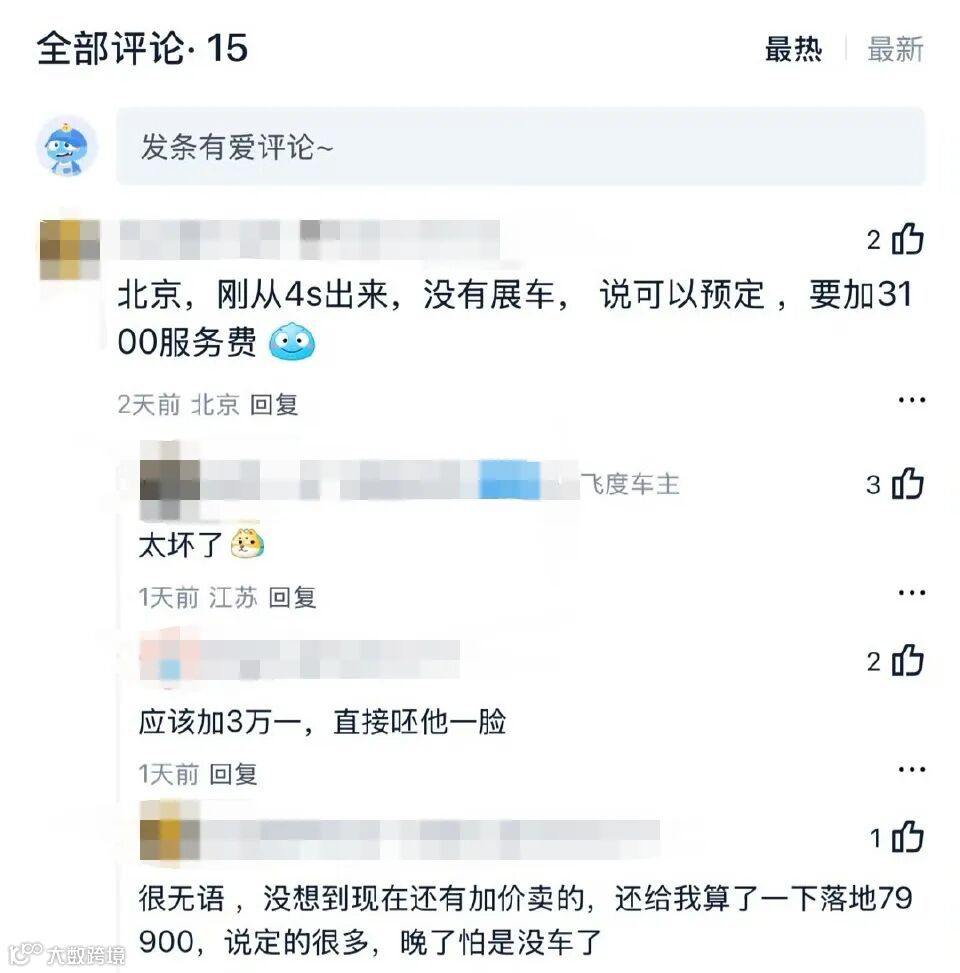针对网传飞度出现加价情况一事,广汽本田官方人员回应媒体称,加价并非厂家行为,而是部分经销商的自主报价和议价行为;目前广汽本田已经启动专项调查,对加价提车、收取额外服务费的行为进行督导纠正。