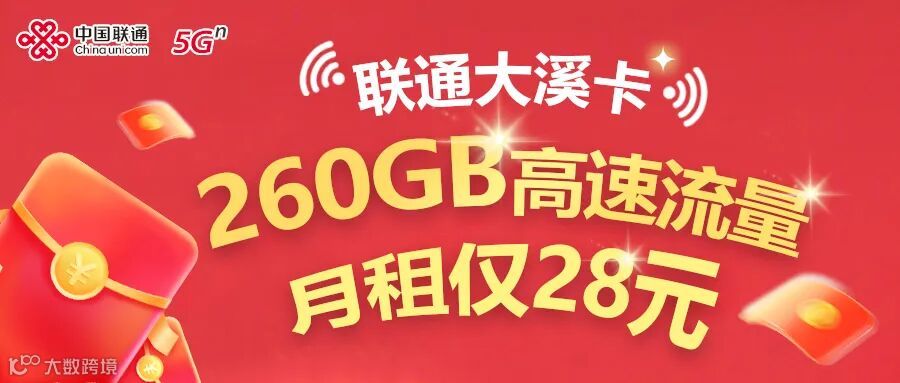 广东联通杀疯了!28元月租享260G全国高速流量!首月还免费,速抢!广东大流量卡!