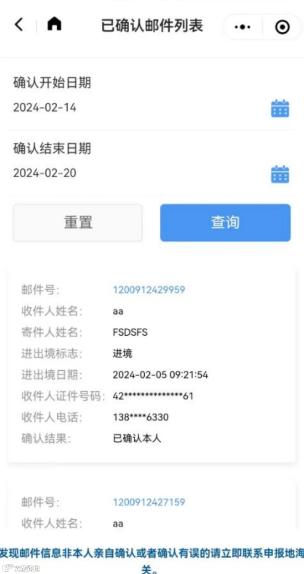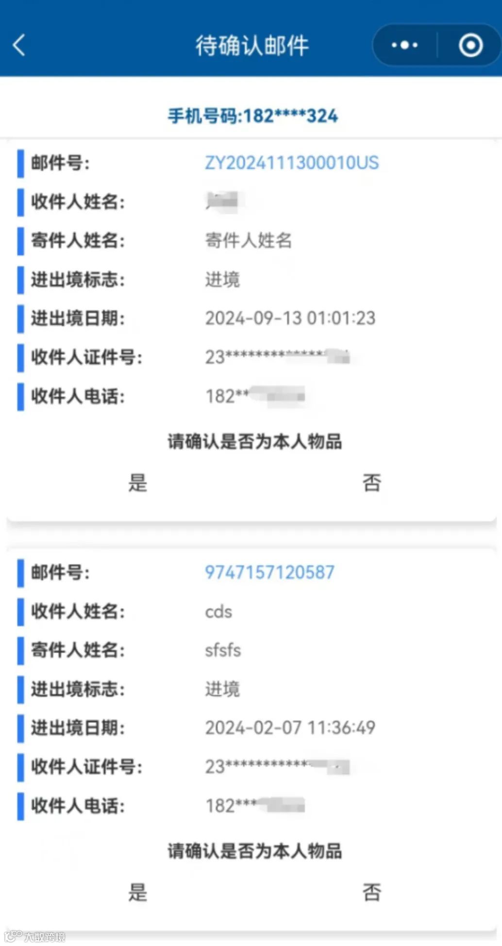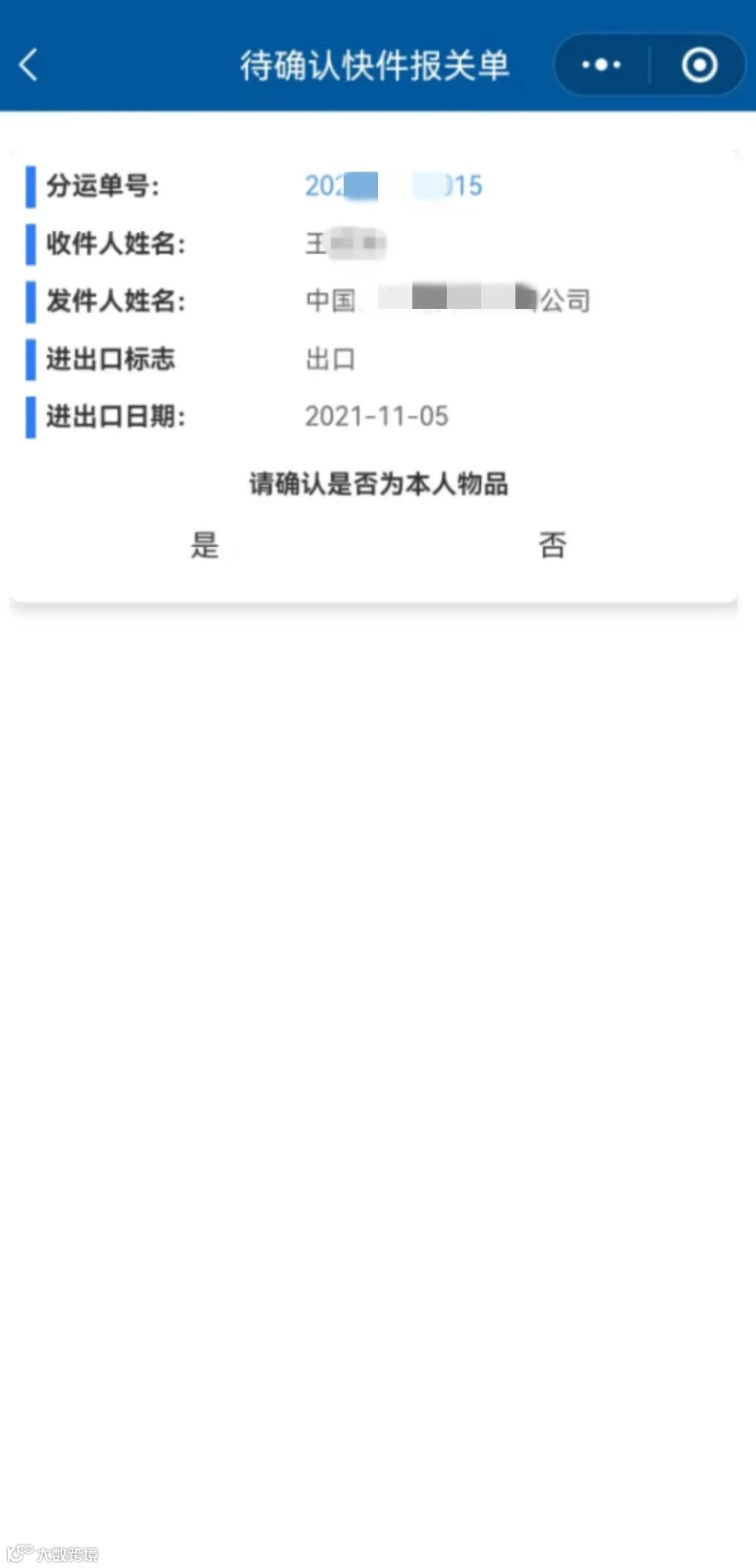 【收件人确认本人物品】——收件人提供的信息真实有效,如无其他风险、违规情况,海关将直接放行。