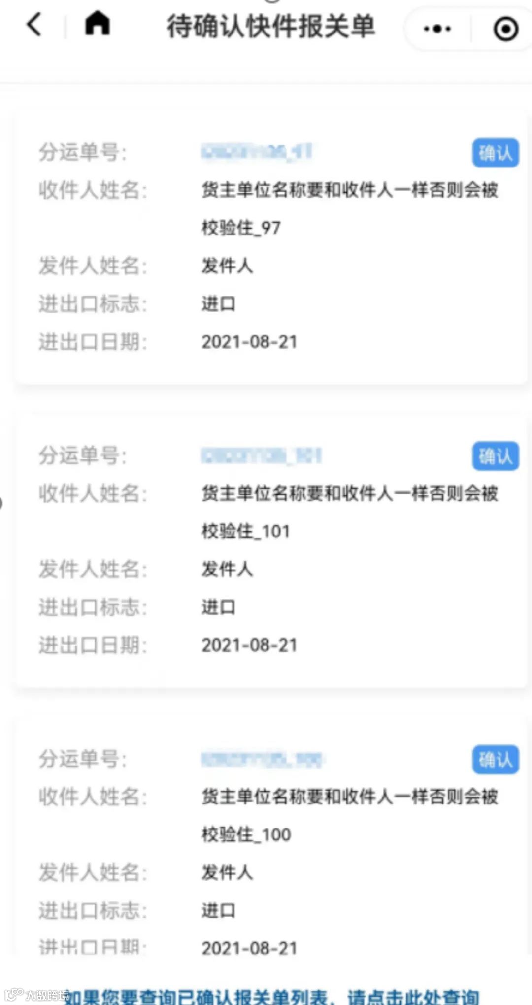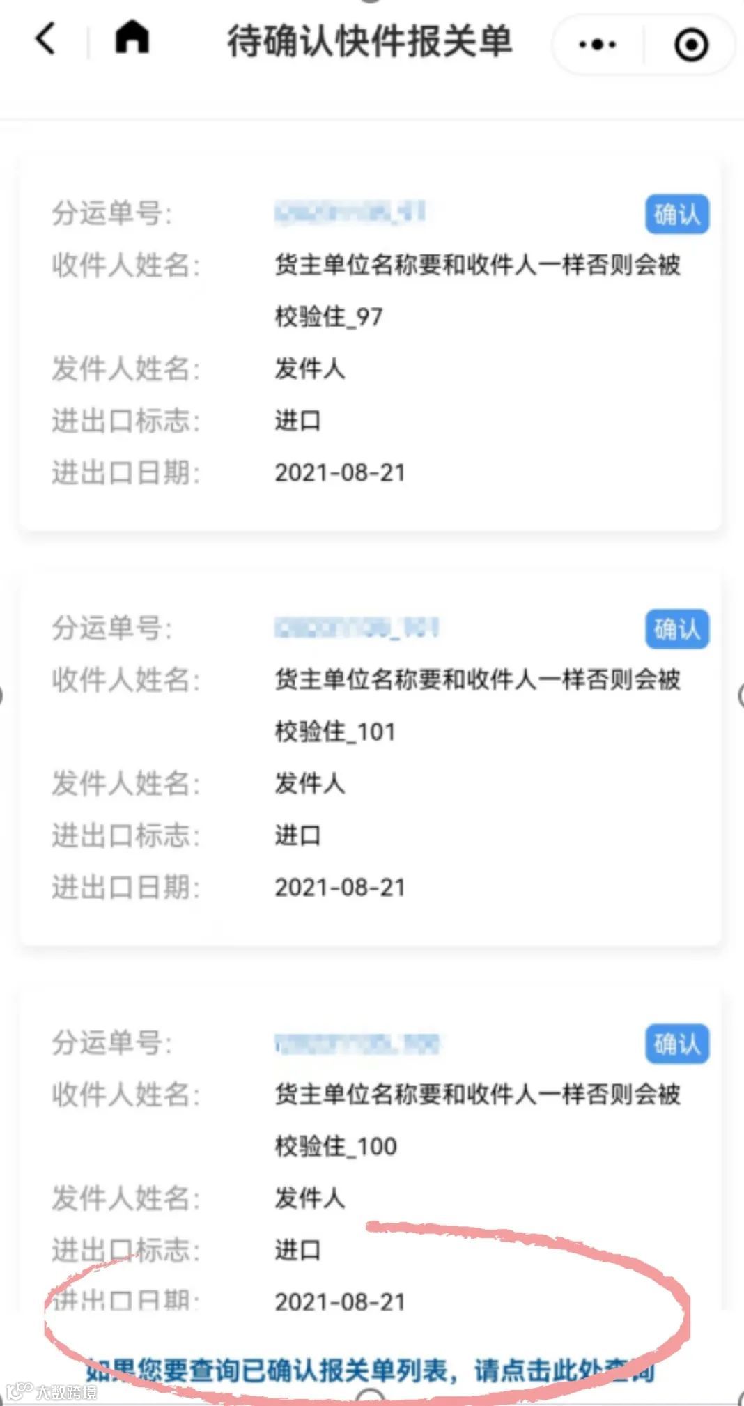 【收件人超期未验核】——收件人未按照时限和信息提示的要求进行操作,海关将不予放行,并进一步核实原因和监管风险。