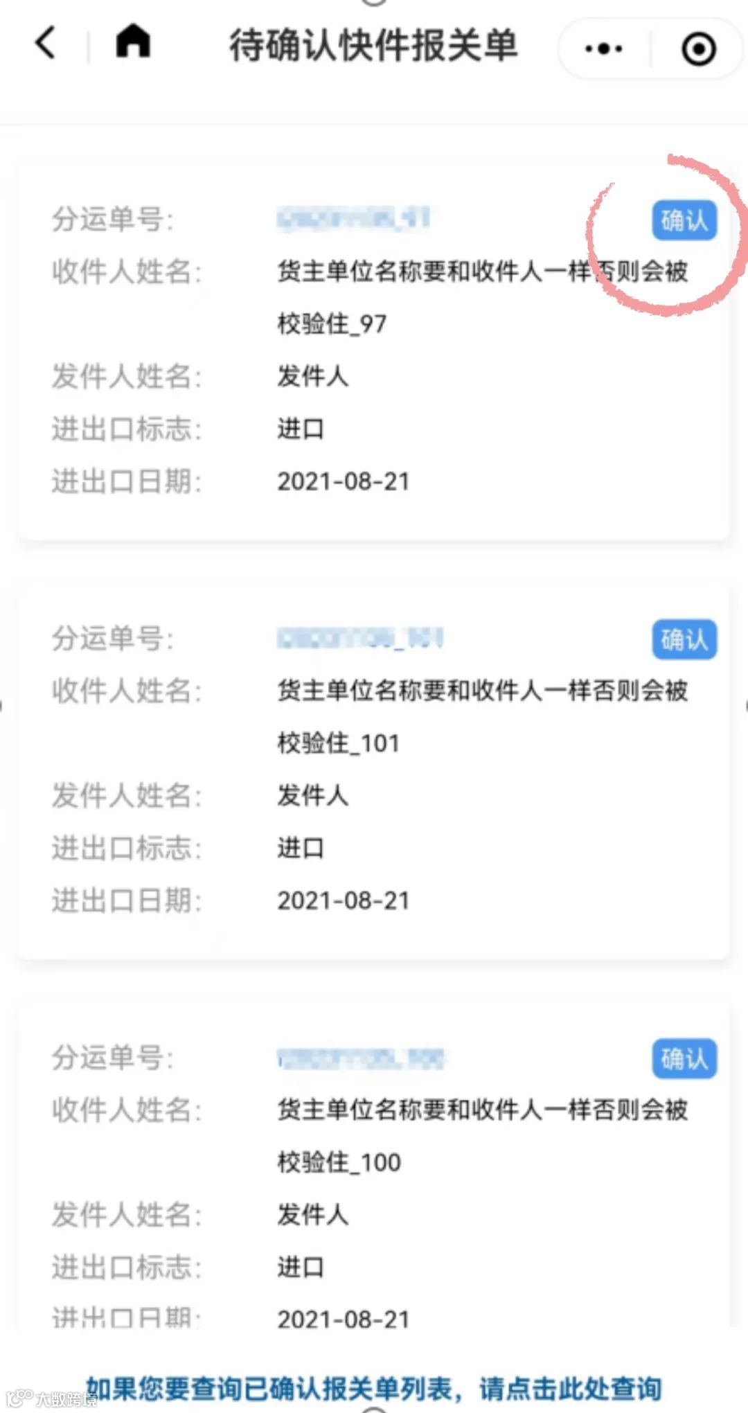 快件的确认操作流程