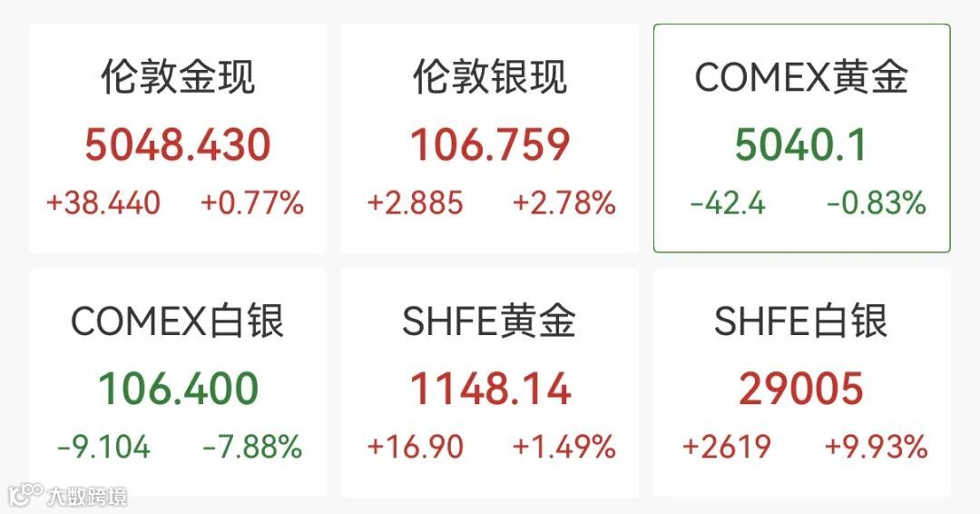 现货黄金一度上涨2.5%,达5110美元/盎司,随后回落至5010美元/盎司附近。