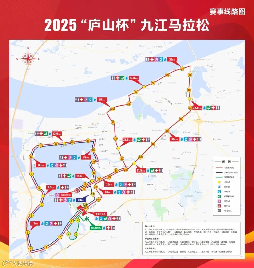 参考比赛线路:(以下为2025九江马拉松比赛线路,仅供跑友参考)