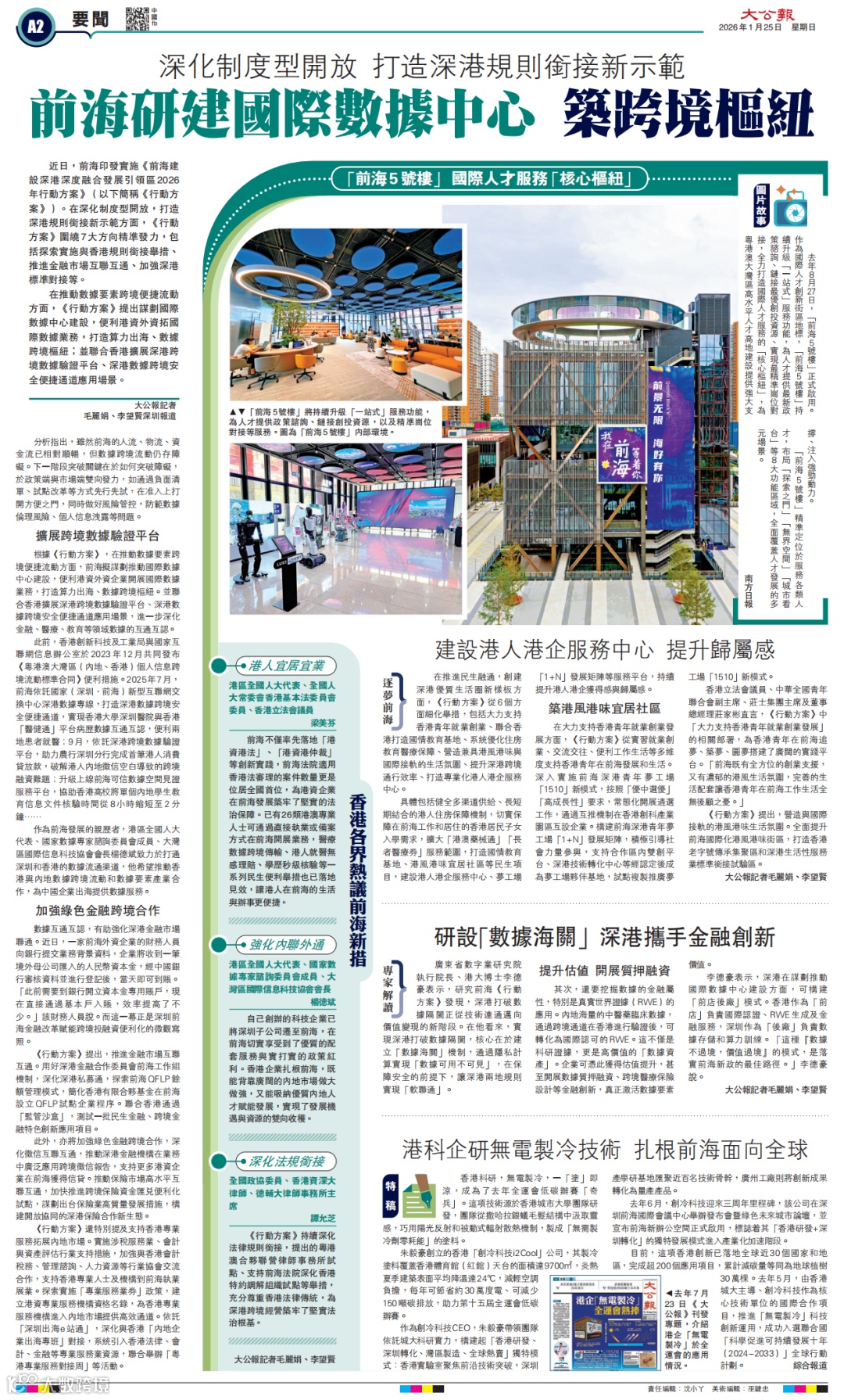 在《行动方案》中,提出「加快『深港汇』双向总部基地建设」。 黄梓谦重点介绍了这个去年12月正式挂牌的项目。他表示,前海正筹划建设港人港企服务中心,并强调这同样不是单一的物理场地,而是把各类服务「打包」成一站式平台。