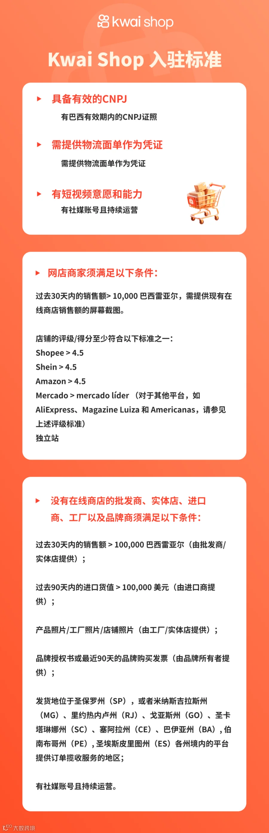 即刻入驻Kwai Shop,享专属权益与支持,抢先入驻热招类目,把握巴西市场新机遇!