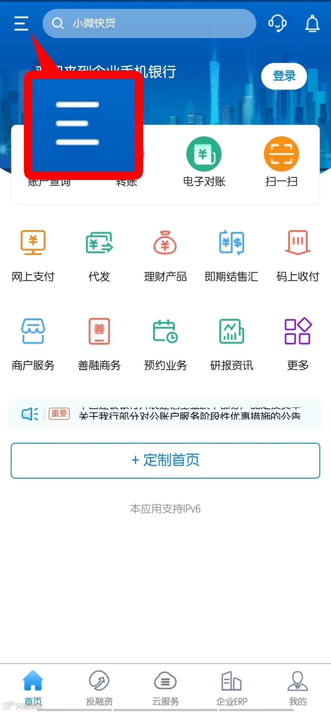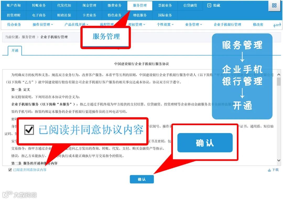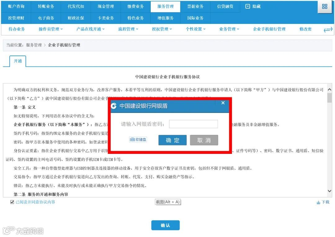 第一步:开通企业手机银行