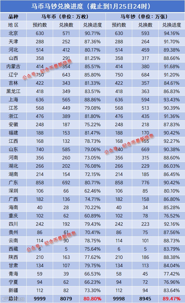 各地区具体兑换进度如下图: