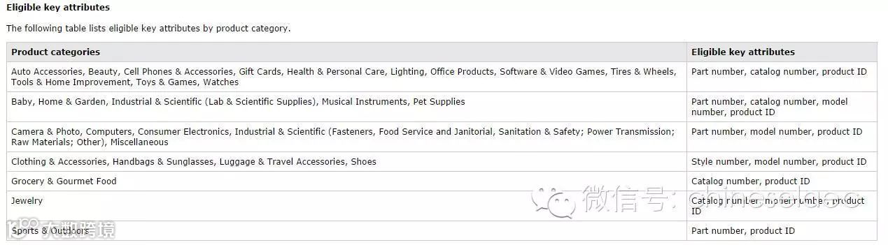 亚马逊GCID KEY ATTRIBUTES