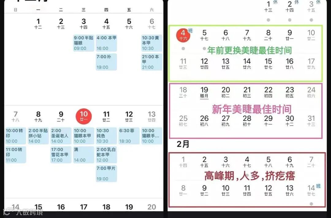 各种美甲、美睫的最佳日历......