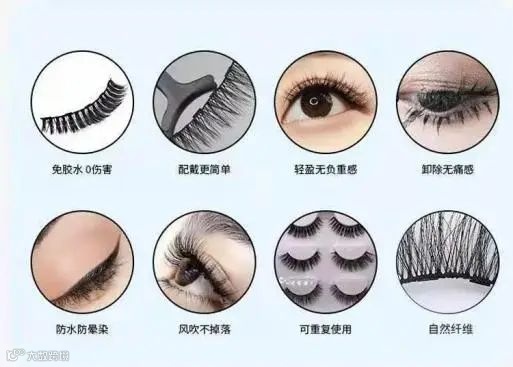 近几年商家鼓吹的不用胶水也能粘上的磁吸假睫毛逐渐盛行,其卖点据说有以下优势: