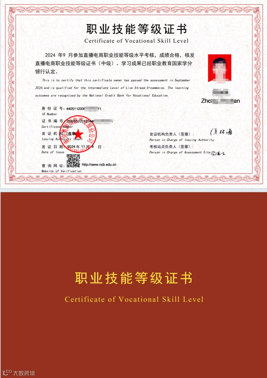 直播电商职业技能等级证书,由国家职业教育学分银行认证,由奥派信息作为第三方鉴定机构颁发,在教育部1+X职业技能等级证书信息管理服务平台全网可查,终身有效,全国通用,是你专业能力的有力象征,具有极高的权威性和认可度。