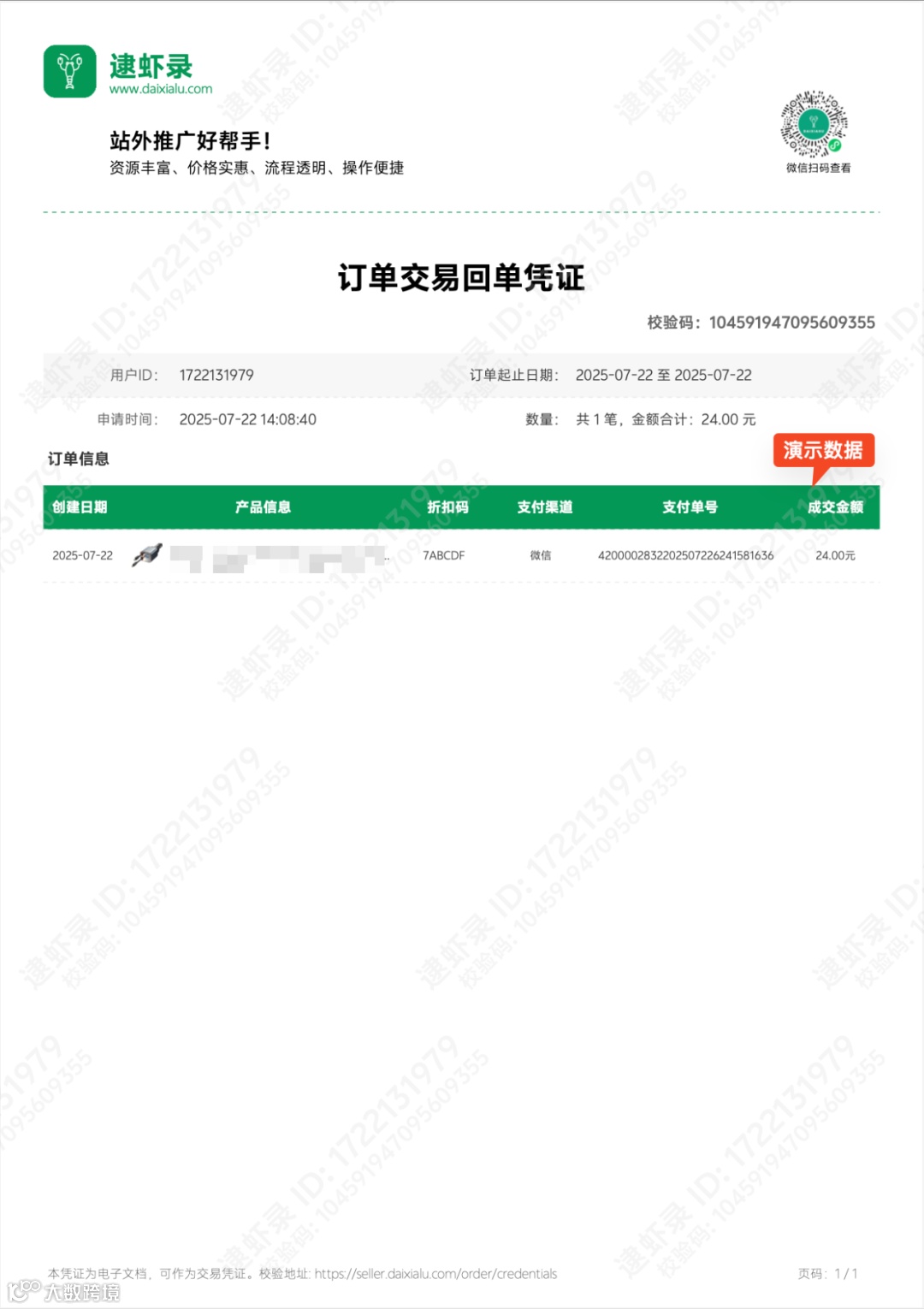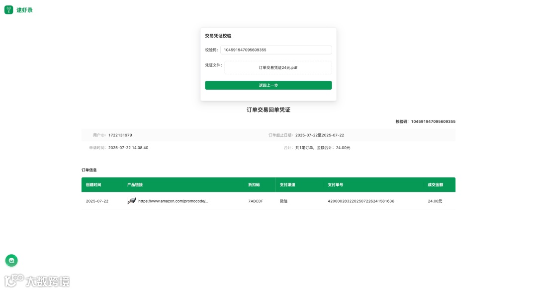 您在逮虾录完成订单交易后,即可申请订单回单凭证。这份凭证包含了订单必要的信息,方便您进行财务核算和报销。