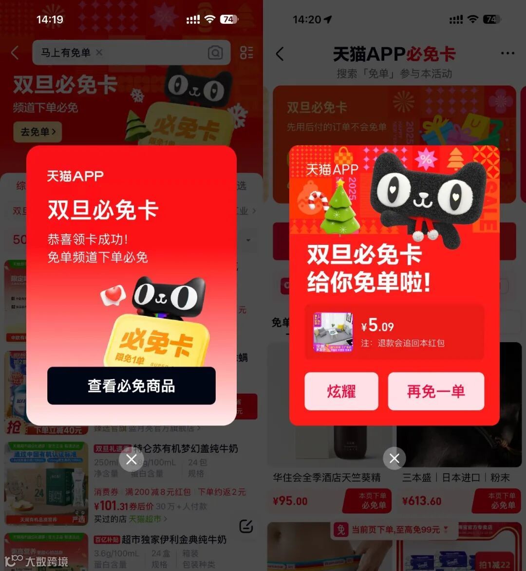 天猫APP搜索“天马行空”->直接领取必免卡一张,攒满100条锦鲤也有一张必免卡