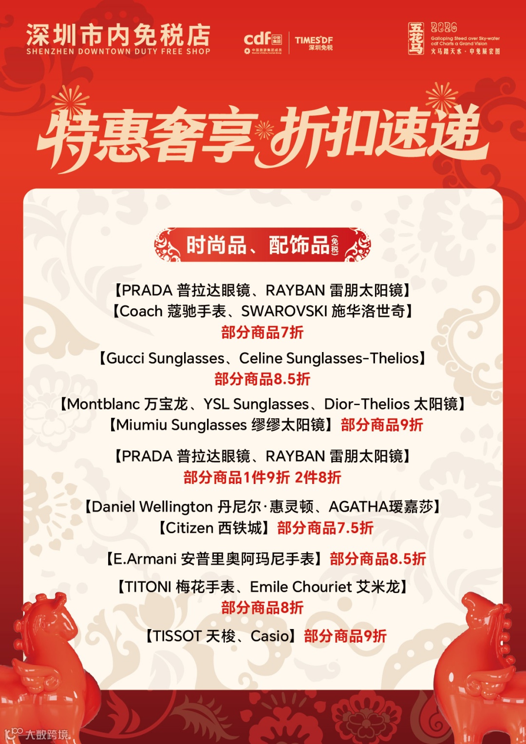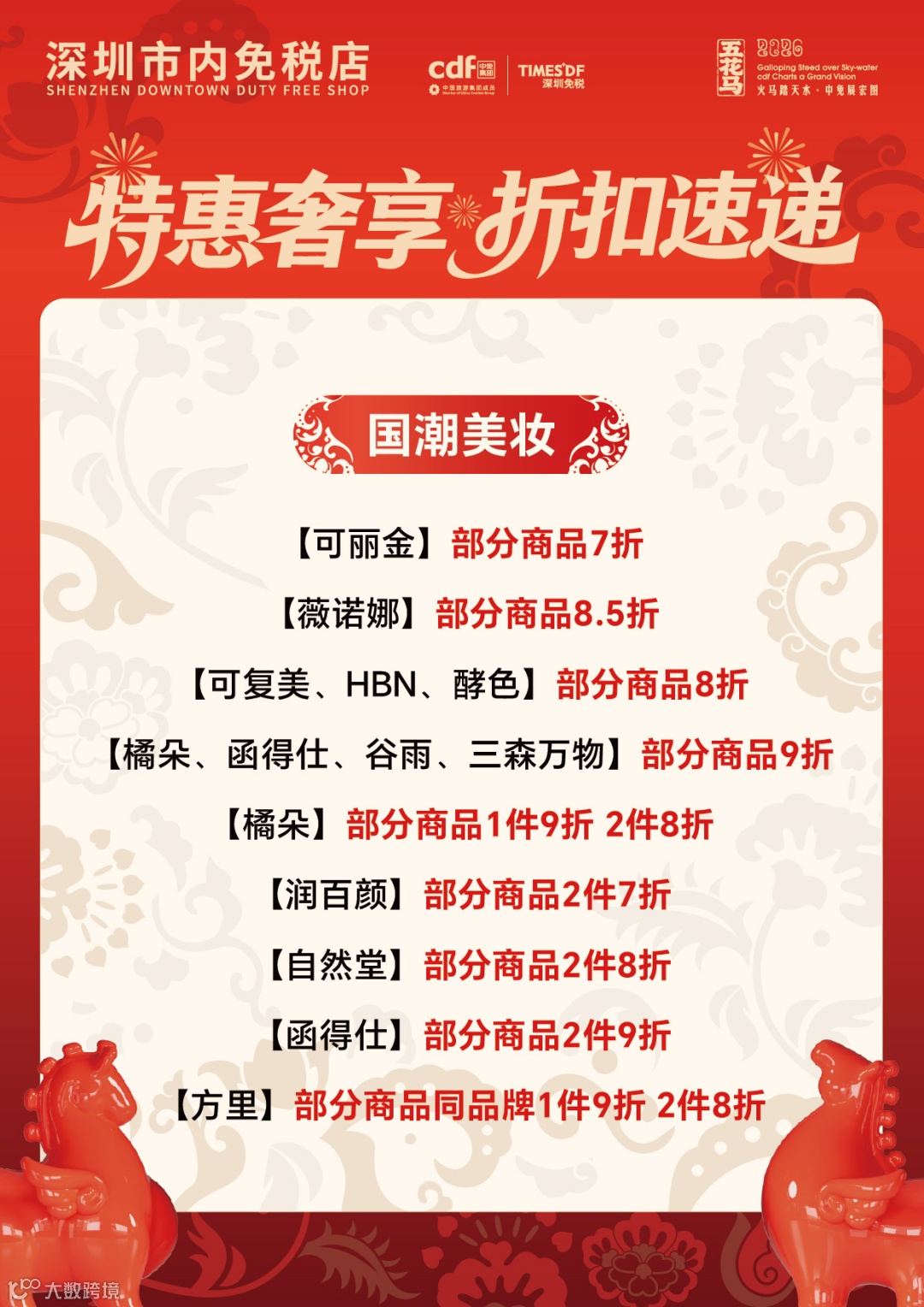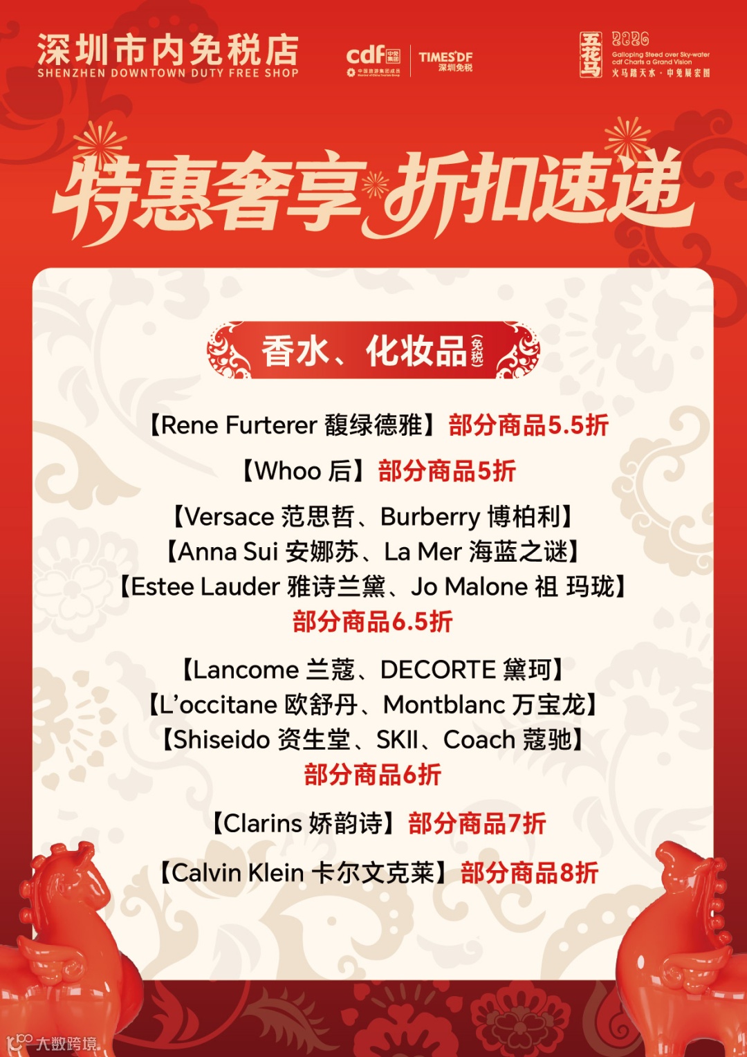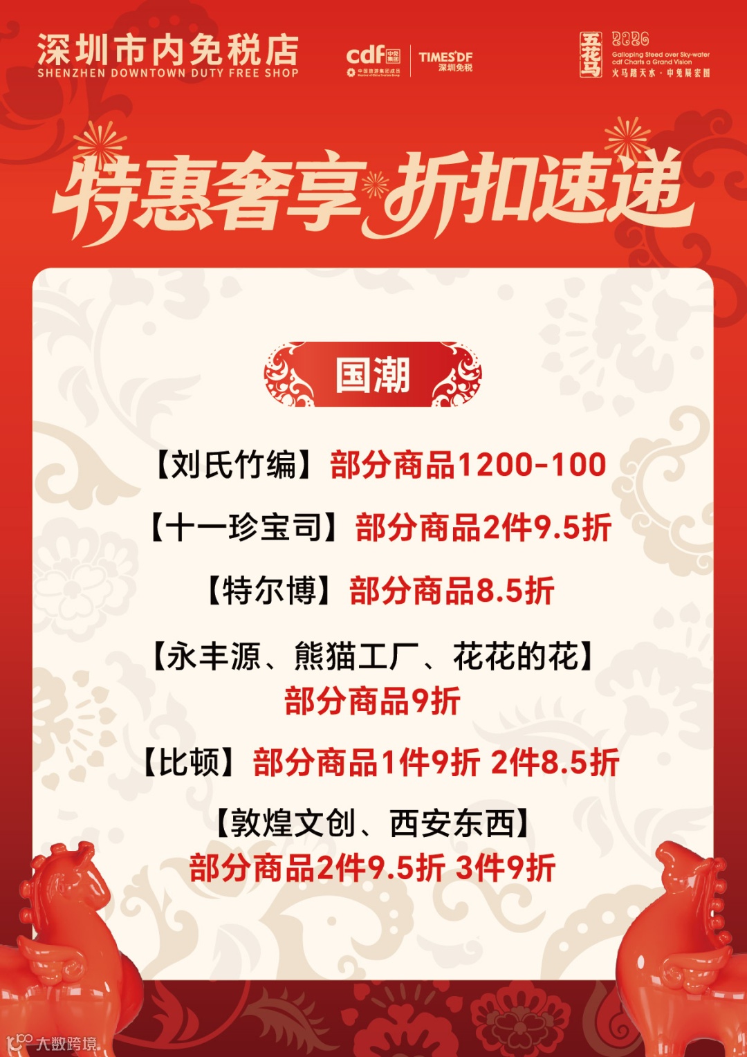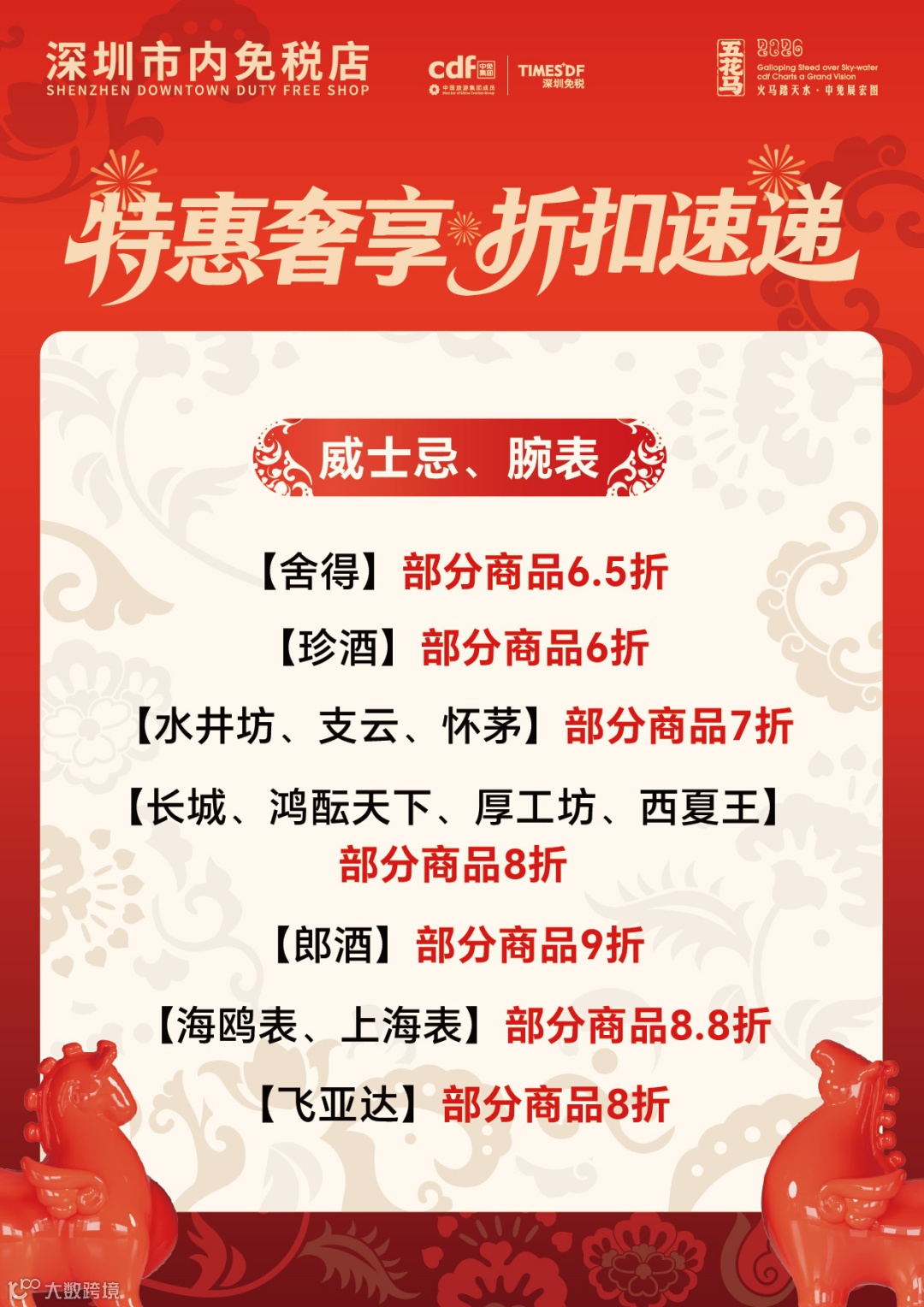 免税区种类丰富,包含国际大牌香化、精品配饰、国内外高端酒水、旅行电子。60天内准备从深圳机场坐国际航班出境,携带出入境有效证件且已经购买机票的顾客,可以购买免税商品,出境当天在深圳机场提货。