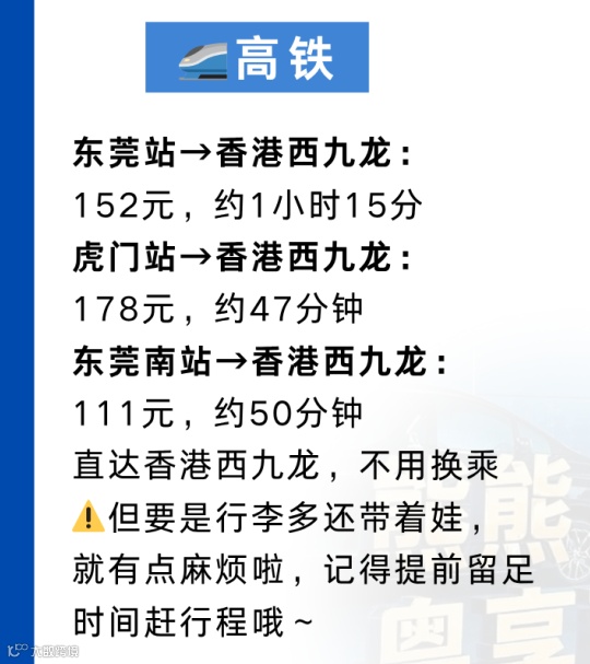 ✅东莞南站→西九龙:111元/50min(性价比高)