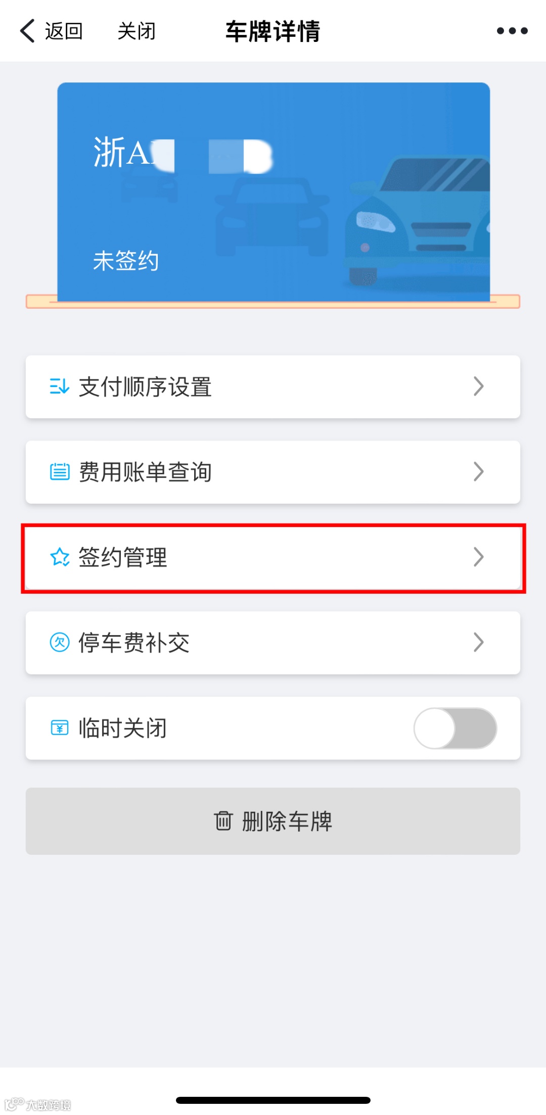 进入“浙里办”APP—搜索“先离场后付费”—点击“已签约的车牌”—选择“签约管理”—选择已签约的支付方式(如支付宝)点击解约—点击关闭免密支付—确认关闭。