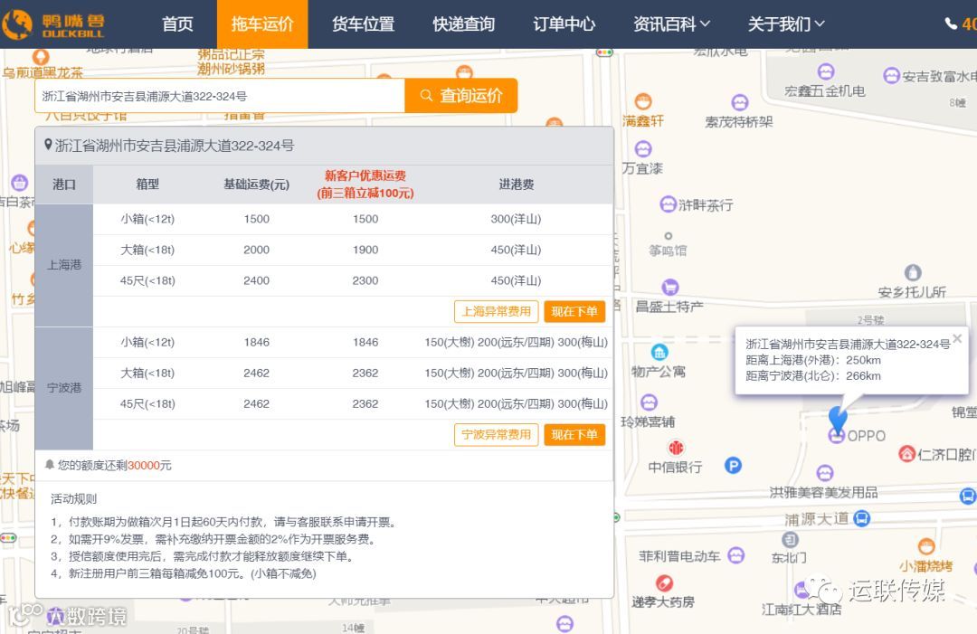 鸭嘴兽打造规模化运力,为国际货代客户的大票货物提供一揽子服务,货代不再需要将一票货物分包给众多小规模的车队,从而大大降低管理成本和风险。同时鸭嘴兽规模化运营和数字化管理,大大降低单车次运输管理成本,为货代企业创造了更多利润空间。鸭嘴兽基于数据对车辆进行智能调度和在途管理,大大提高运输的准点率。目前,鸭嘴兽90%的客户试用在线服务,客户通过鸭嘴兽的网站(www.yazuishou.com)运价查询,提交运输订单,跟踪运输进展,完成对账结算等。