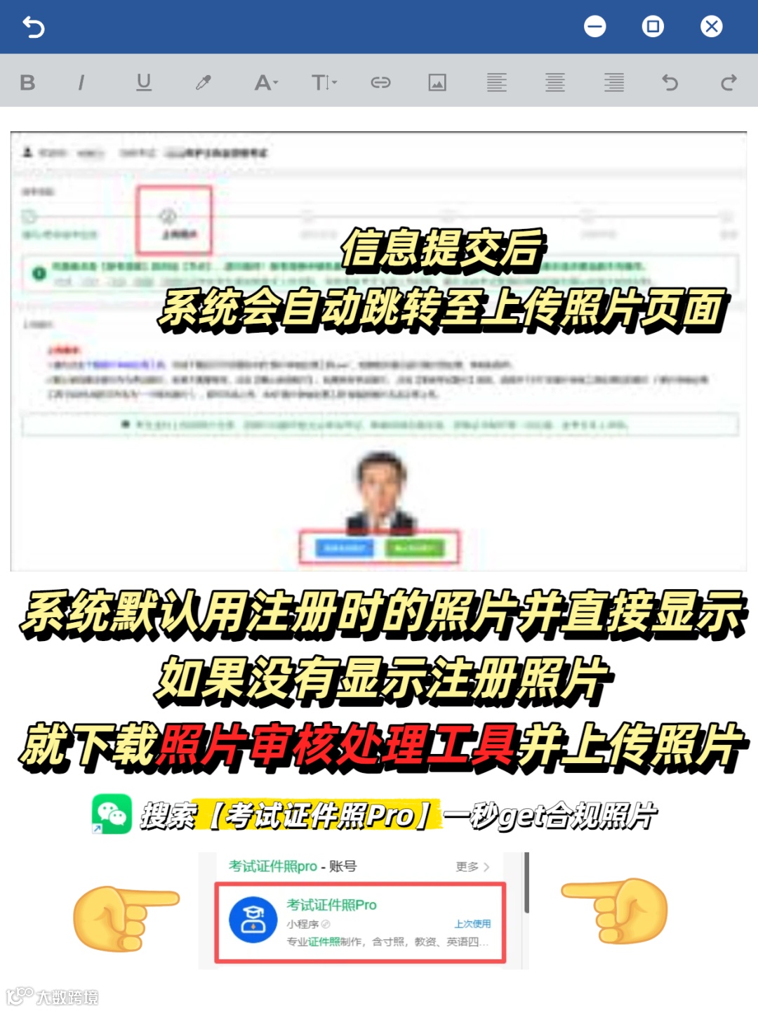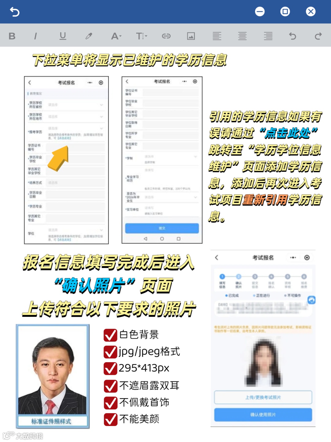- 其他要求:近期免冠,必须清晰露出额头、双耳,禁止美颜