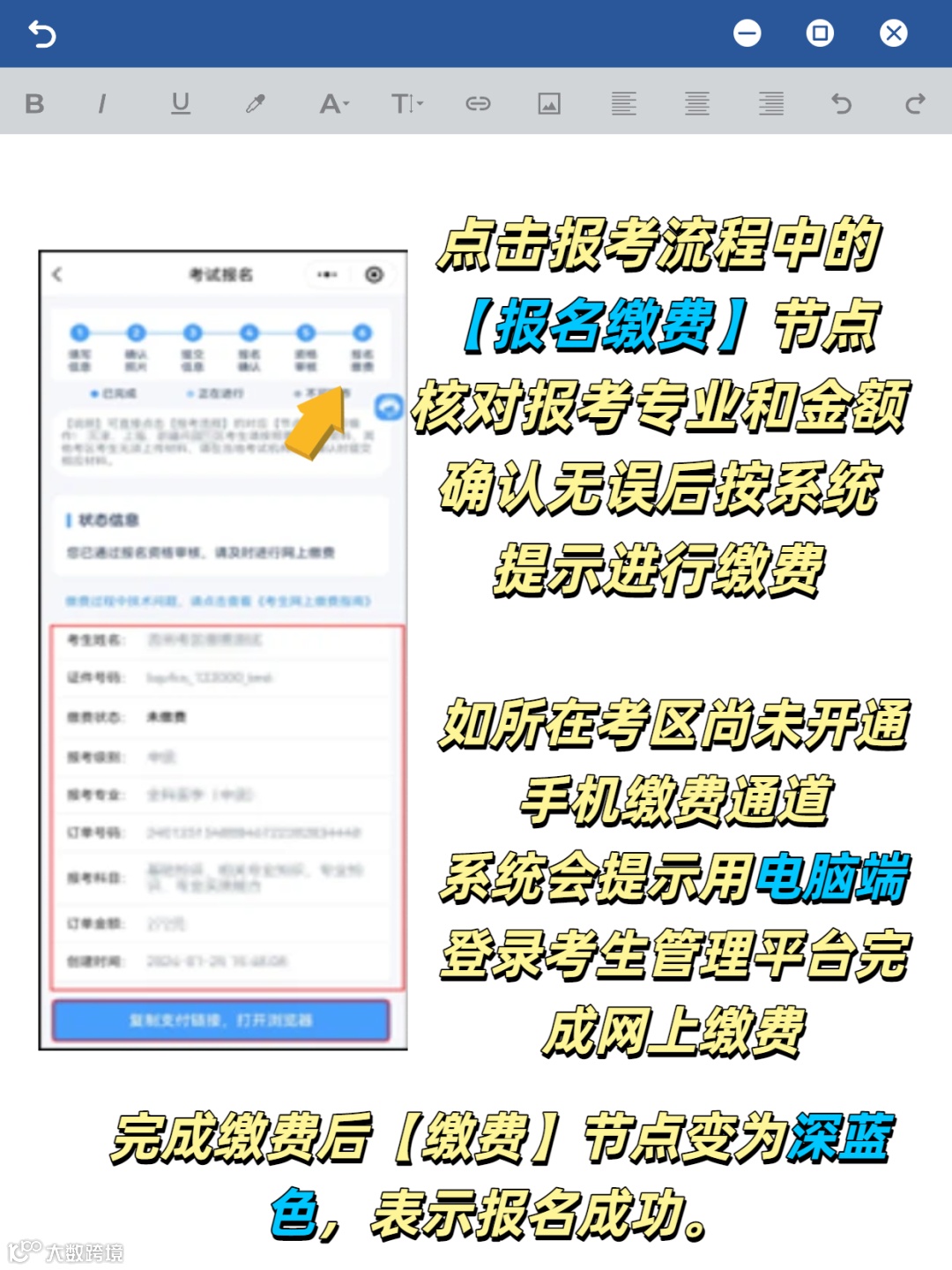 网上缴费:确认通过后,在规定时间内交钱,完成报名。