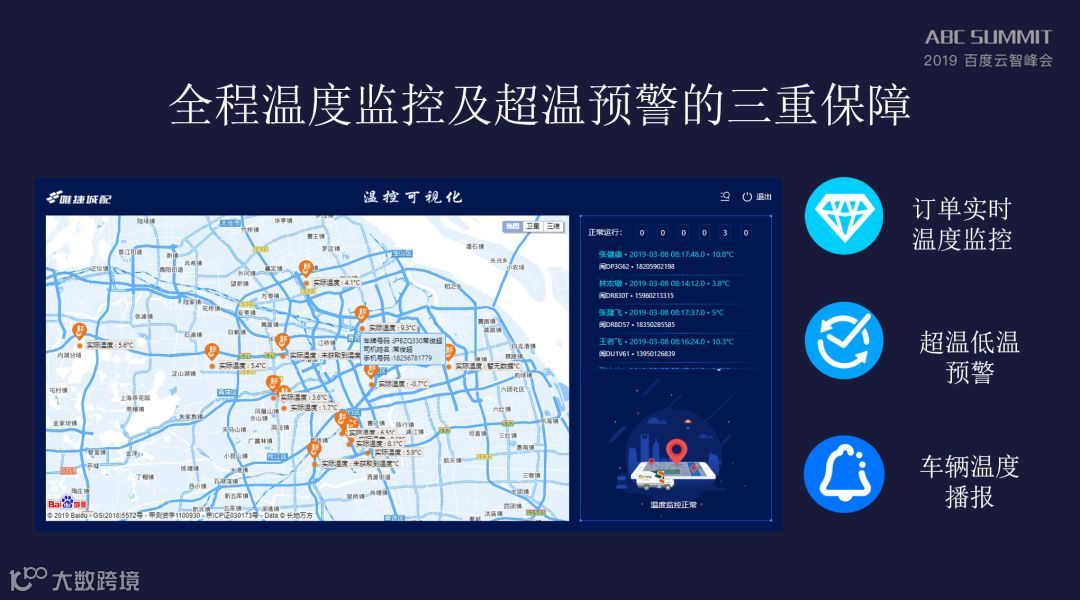 在配送过程中,实时轨迹跟踪和路线预测调整,也是运营管理非常好的助手。GPS订单温控系统,异常预警和车辆温度播报,让低温商品的质量得到了全程保护。