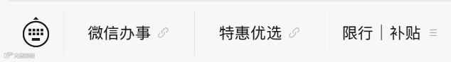 ➤可以在下方菜单栏点击微信办事,特惠优选,限行|补贴获取你想看的内容: