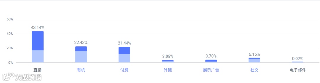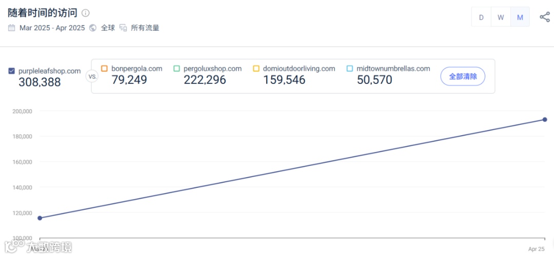 图源:卖家精灵Simlarweb数据显示,2025年3-4月,品牌独立站月访问量达30万次,流量处于持续上涨趋势。其中,直接流量占43.14%,有机流量占22.43%,付费流量占21.44%。