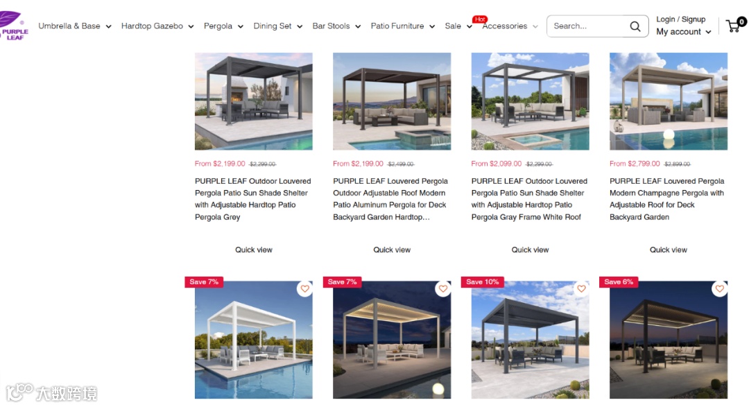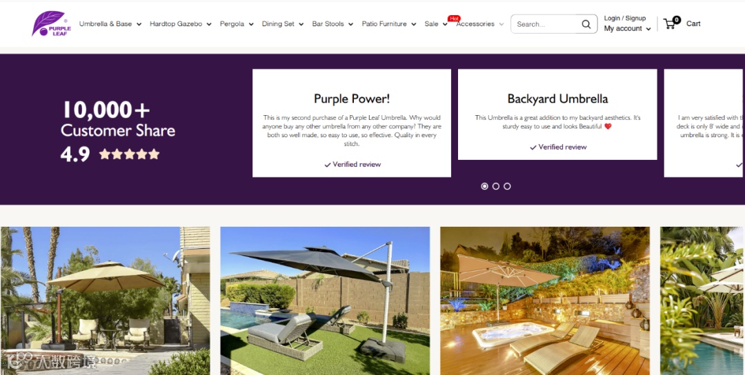 除遮阳伞外,PURPLE LEAF围绕庭院场景,在独立站上线产品数已增加20余款,打造丰富的SKU。
