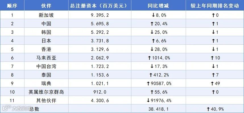 房地产业位列第二,注册资本超71亿美元,占比18.51%(同比增长12.7%);