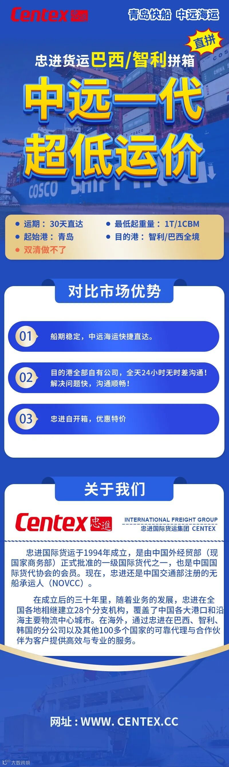 导读:巴西智利拼箱,青岛直拼,自开箱,超优运价