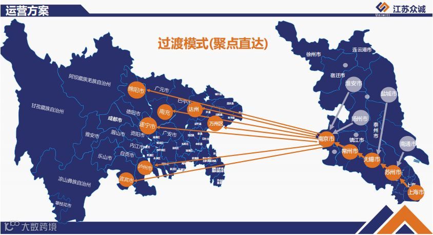 江苏众诚点点直达产品由江苏众诚、无锡中川、马邦众诚、众诚赛宇、众诚志勤、扬州众诚、南通晨阳、南京一顺联合打造,上海灿盛、上海蓝卡、无锡诚邦、常州威邦等省内短线加盟助力,全力实现江苏上海全网对绵阳、宜宾、遂宁、南充、泸州、万州等二级城市的点对点直达。(运联传媒 ID:tucmedia)