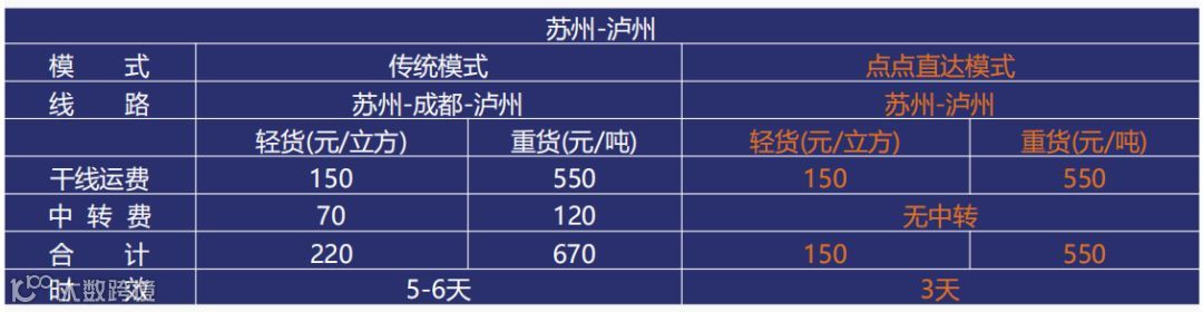 这也代表着运价成本降低,单价降低到轻货70元/方,重货120元/吨。轻货成本降低31.8%,重货成本降低17.9%,时效减少2到3天。